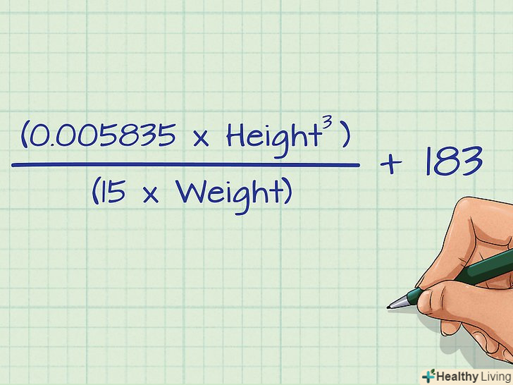 - Підставте зростання в формулу. Зростання в дюймах зведіть в 3 ступінь і помножте на 0.005835.