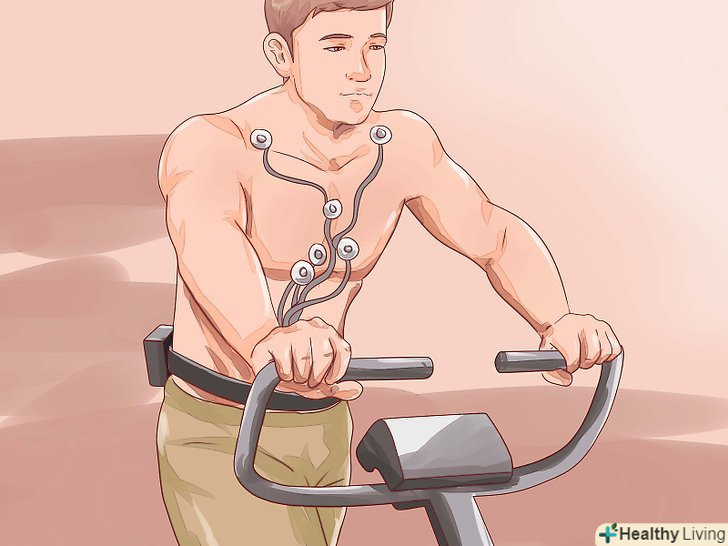 Виміряйте свій пульс при фізичних навантаженнях. в цьому випадку електрична активність вашого серця записується на електрокардіограму в той час, поки ви крокуєте по біговій доріжці, крутите педалі стаціонарного велотренажера,,, а потім збігаєте вниз.- Перед активною стадією необхідно записати електрокардіограму в стані спокою для порівняння.