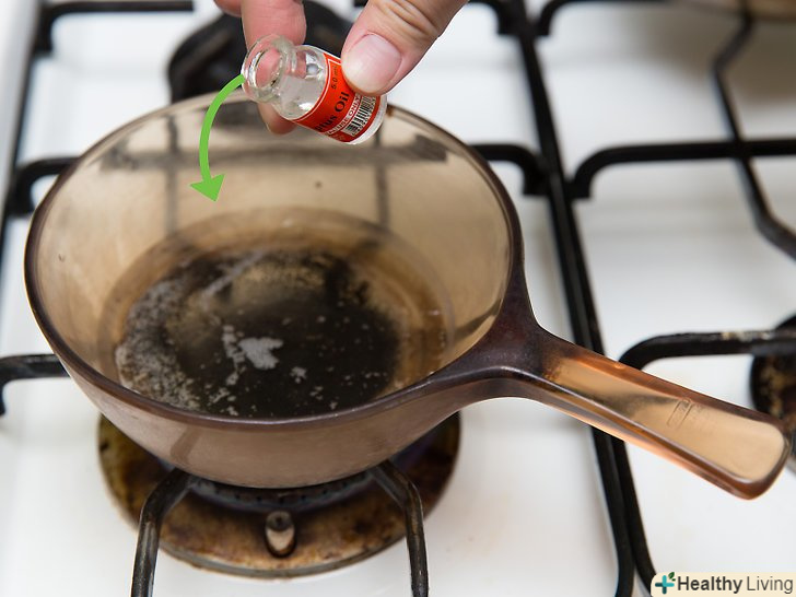 Підігрійте оливкову олію.тепле оливкова олія розм'якшить сірчану пробку і допоможе її прибрати.[4] нагрійте оливкову олію до температури тіла-приблизно до 36,6 С. це середня температура в порожнині внутрішнього вуха. Ви не будете відчувати дискомфорт при застосуванні масла, нагрітого до температури тіла. Підігрійте дві-три столові ложки чистого оливкового масла.- Проте, дуже важливо не перегріти масло. Гаряче масло може привести до пошкодження барабанної перетинки. Температура масла не повинна перевищувати температуру вашого тіла.