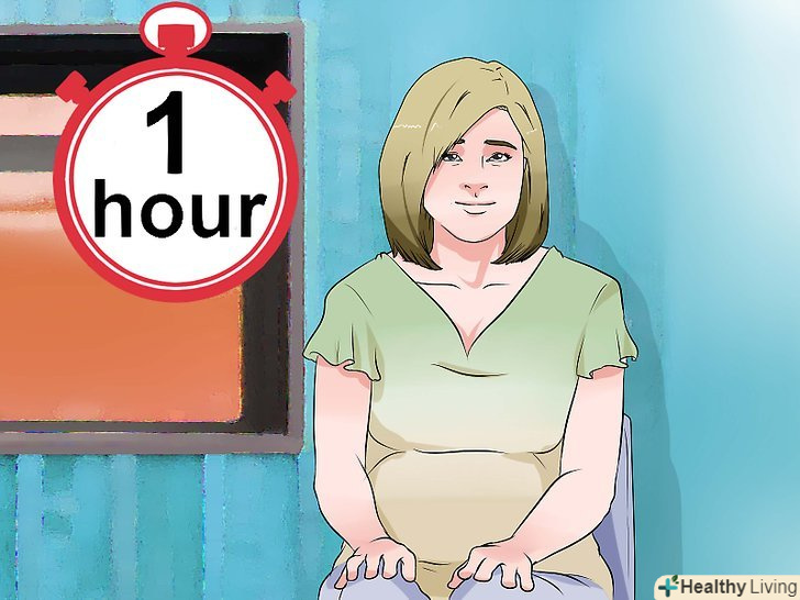 Зачекайте 1 годину.після того як вип'єте розчин глюкози, вас попросять посидіти годину, щоб глюкоза всмокталася в кров.[26]- Аналіз дозволить зрозуміти, наскільки швидко організм засвоює цукор.