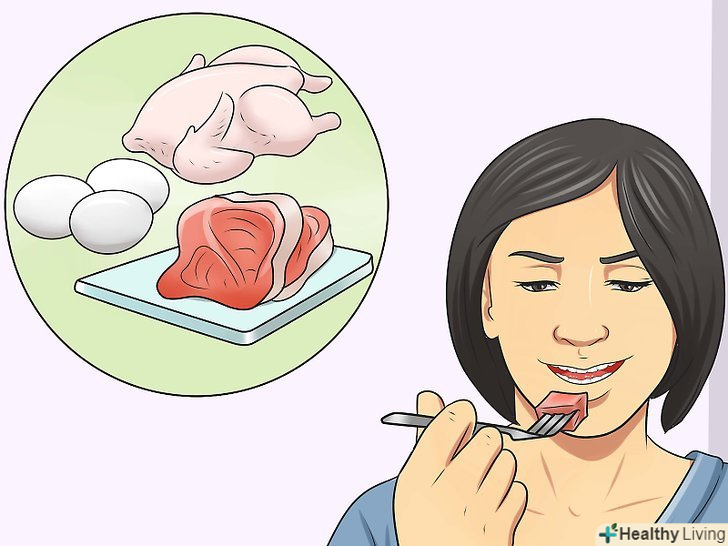Їжте білкові продукти, але не надто багато.у минулому лікарі радили людям з гіпоглікемією вживати білкові продукти чотири-п'ять разів на день, щоб підтримувати відчуття ситості і уникнути перепадів рівня цукру в крові. Однак високобілкова дієта містить більше насичених жирів і підвищує ризик серцево-судинних захворювань в порівнянні з дієтою, при якій білок споживається помірно.[12] рекомендується проконсультуватися з лікарем або фахівцем з харчування, щоб визначити найбільш підходящий для вас раціон.