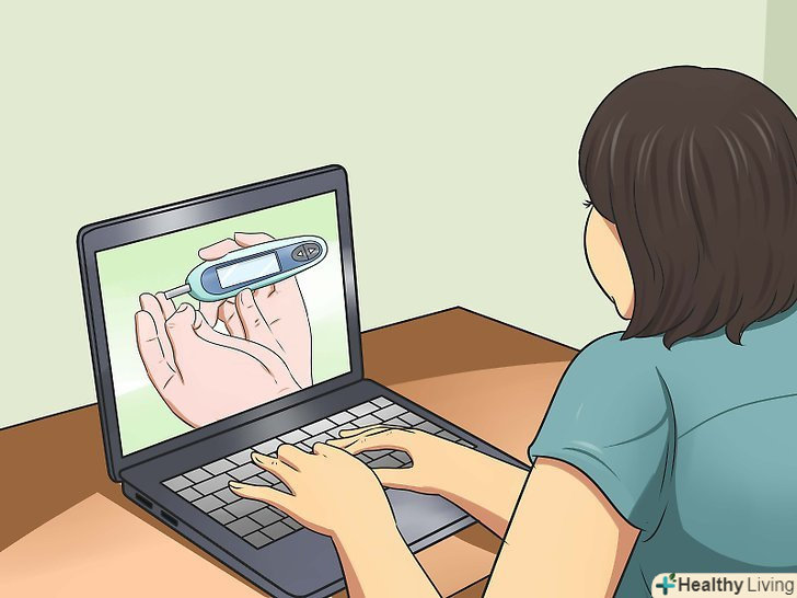 Перевіряйте рівень цукру в крові.перевірка рівня цукру в крові вкрай важлива при діабеті. Зазвичай це робиться за допомогою електронного глюкометра. Згідно з вказівками лікаря кілька разів на день ви будете повинні проколювати палець, щоб отримати краплю крові і зробити аналіз на спеціальній смужці глюкометра. Рівень цукру в крові більше 126 мг / дл до їжі і 200 мг/дл через дві години після їжі вважається гіперглікемічним (високим). Також може бути корисним регулярно вести запис результатів аналізів-це допоможе вам зрозуміти, як рівень цукру в крові змінюється в залежності від вашого харчування і рівня фізичного навантаження.[2]- Деякі глюкометри мають пружинні ланцети, через що аналіз може бути менш болючим. Інші глюкометри дозволяють робити аналіз крові з руки, стегна або кисті.
