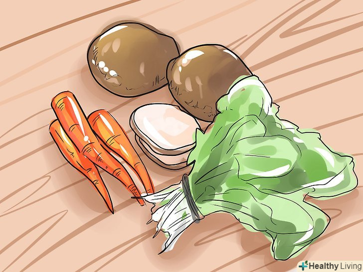 Споживайте деякі овочі, багаті калієм.не тільки фрукти є джерелом калію. Овочі також можуть підвищити рівень калію. Овочі, що містять калій, включають [2]:- Морква (один стакан сирої моркви містить 689 мг калію), картопля, шпинат і інша темна зелень, гриби і гарбуз.