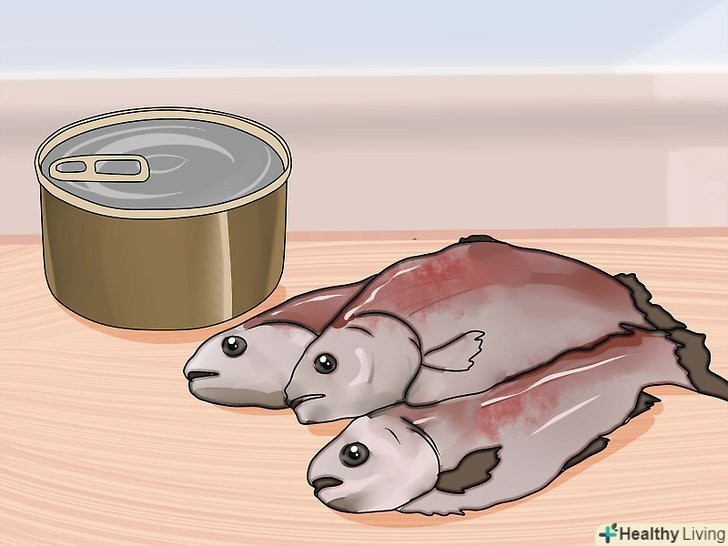 Їжте морепродукти, які є хорошим джерелом калію.калієм багата також риба. Порція риби вагою 100 грамів містить наступну кількість калію:[19]- 569 міліграмів-консервований лосось або тунець;