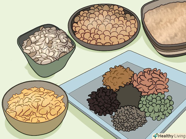 Включіть в свій раціон багаті калієм горіхи і бобові.багато горіхів і бобових також є хорошим джерелом калію. Крім того, вони часто багаті білком, харчовими волокнами та іншими мікроелементами. Значна кількість калію міститься в наступних продуктах:[20][21]- 400 міліграмів в 1/2 склянки вареної квасолі Пінто;