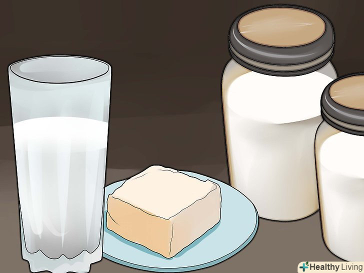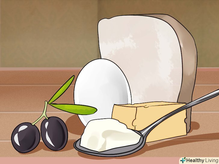 Додайте в свій раціон більше молочних продуктів.молочні продукти є одним з кращих джерел калію. Наприклад, в одній склянці йогурту міститься приблизно 580 міліграмів калію.[11] один стакан нежирного молока містить близько 380 міліграмів калію.[12]- Намагайтеся вибирати нежирні молочні продукти, коли є така можливість. Занадто велика кількість цільних молочних продуктів значно підвищить денне споживання калорій.