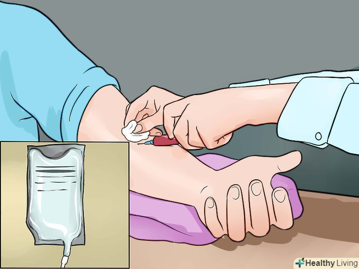 Зробіть внутрішньовенну замісну терапію.якщо лікар виявить дуже низький рівень калію, аритмію або інші серйозні симптоми, він може призначити внутрішньовенне введення калію.[29] при цьому калій вводиться дуже повільно і під наглядом лікаря, інакше він може вплинути на серце.[30]- При внутрішньовенному введенні калію можливе сильне подразнення в місці ін'єкції.
