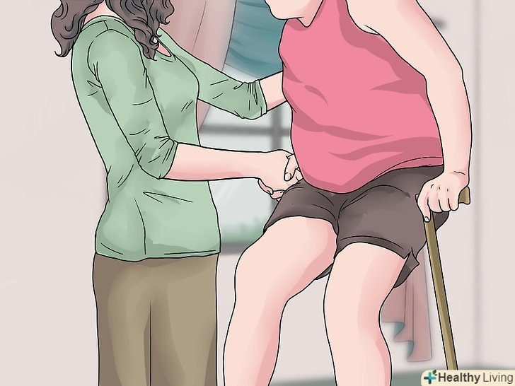 - Якщо сходинок ніяк не уникнути, встановіть перила, щоб вашому близькому було простіше підніматися і спускатися.[4] Фізіотерапевт буде працювати з пацієнтом, щоб допомогти йому знову навчитися пересуватися, включаючи і освоєння заново навичок підйому і спуску по сходах.