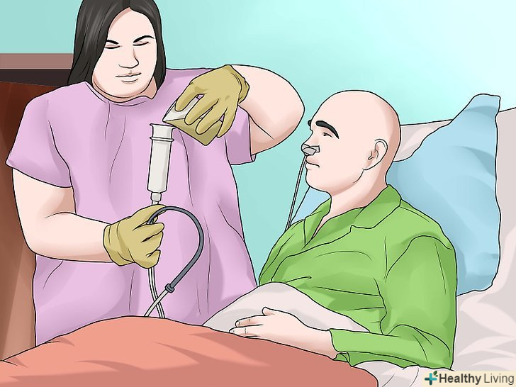 Вивчіть техніки годування.дисфагія-медичний термін, що позначає утруднене ковтання. Після інсульту людина може зазнавати труднощів з їжею і питтям, оскільки м'язи, що відповідають за пережовування і ковтання можуть бути ослаблені (особливо це спостерігається безпосередньо після інсульту).[7] тому важливо допомогти коханій людині пристосуватися до нового способу прийому їжі і пиття, щоб він отримував достатньо їжі.- Після удару, особливо на ранніх етапах, часто доводиться використовувати трубку для зондового харчування.[8] в особливо складних випадках трубка для харчування стає обов'язковим пристосуванням, що дозволяє людині, яка пережила інсульт, отримувати достатню кількість поживних речовин.
