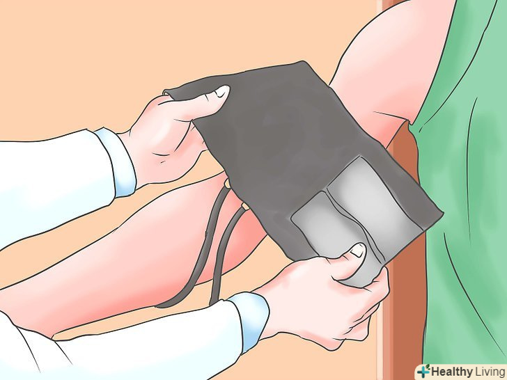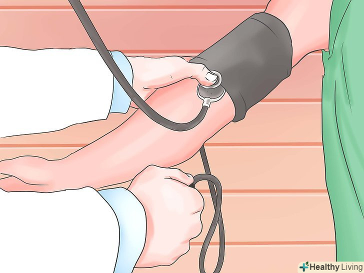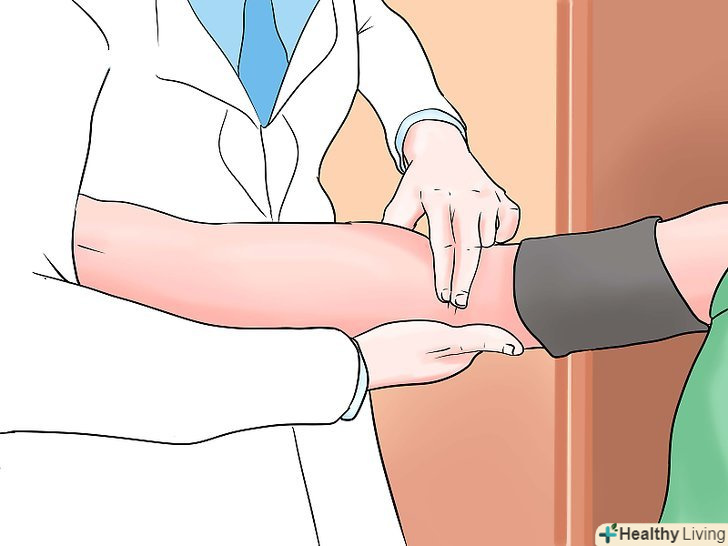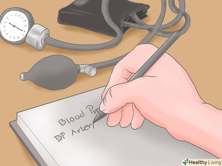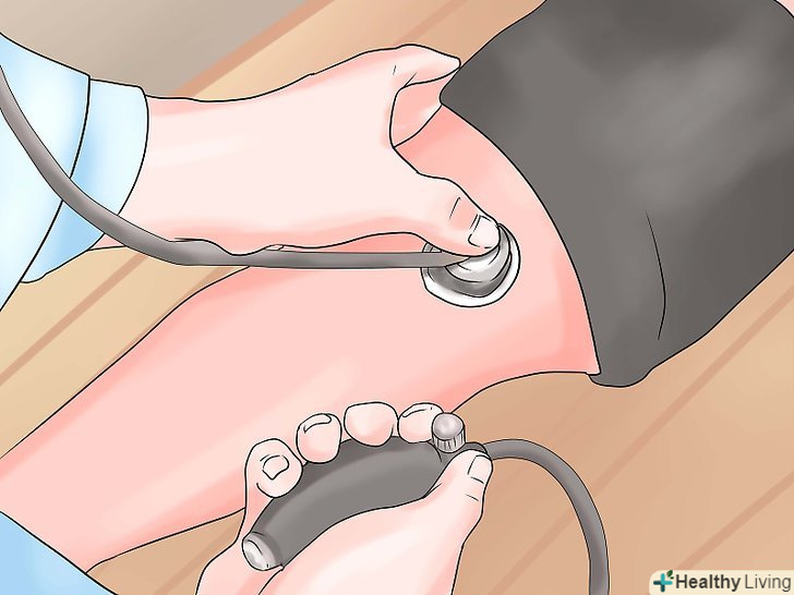 Накачайте манжету, щоб визначити систолічний артеріальний тиск на руці. щоб визначити показання артеріального тиску, помістіть мембрану (кругла частина) стетоскопа на плечовий пульс. Закрийте клапан ручного насоса і використовуйте його, щоб накачати манжету до приблизно 20 мм рт.ст. вище звичайної кров'яного тиску, або поки перестане бути чути пульсуючий звук пульсу пацієнта. [3]- Систолічний тиск характеризує максимальний артеріальний тиск, що створюється в результаті скорочення лівого шлуночка серця.