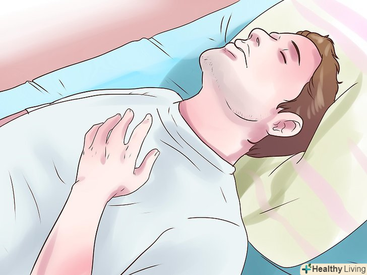 Спостерігайте за своєю задишкою, навіть поки ви просто лежите або спите.задишка поки ви лежите або спите - це, мабуть, найсильніший показник серцевої недостатності, а також знак того, що вам потрібно негайно звернутися до лікаря.- Вам незручно спати на спині, лежачи на рівній поверхні, і ви намагаєтеся підкласти додаткову подушку, щоб підняти верхню частину тіла вище і зменшити больові відчуття під час сну.