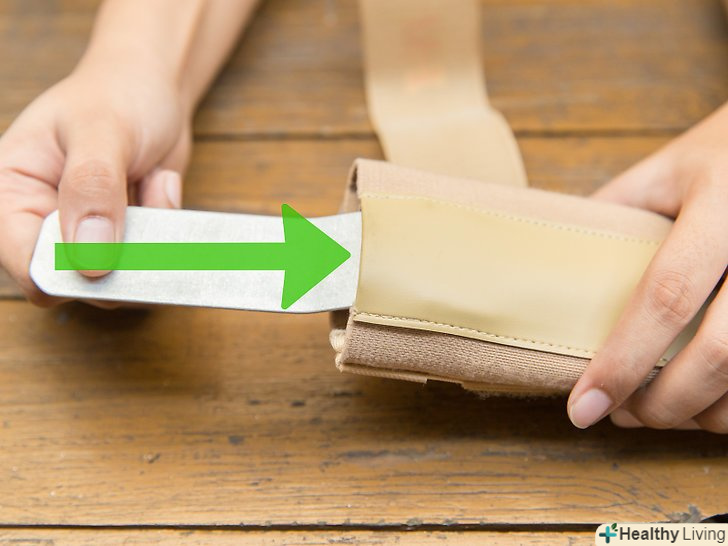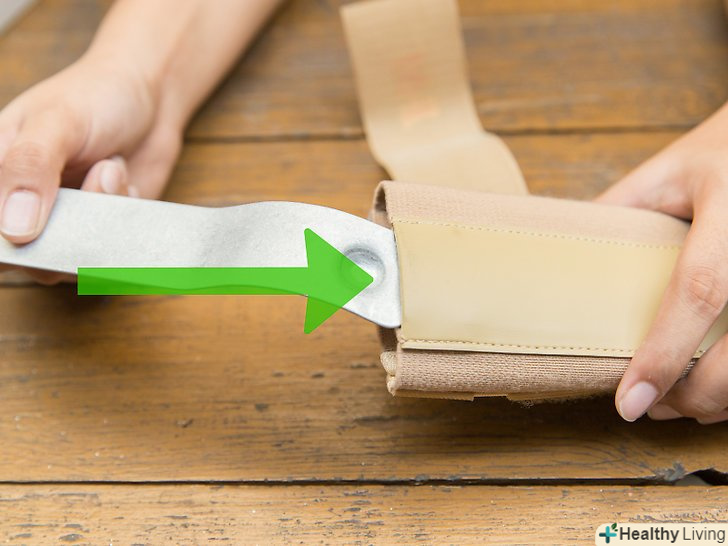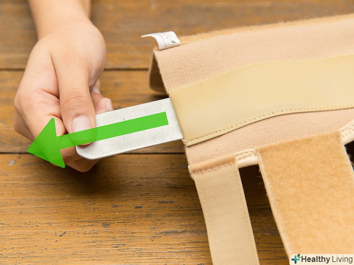 Вийміть металеві пластини з фіксатора.якщо фіксатор можна випрати в машинці, розстебніть гачки і вийміть металеві пластини.- Це дозволить запобігти пошкодженню металевої пластини, яка всередині фіксатора використовується для фіксації і шинування зап'ястя.