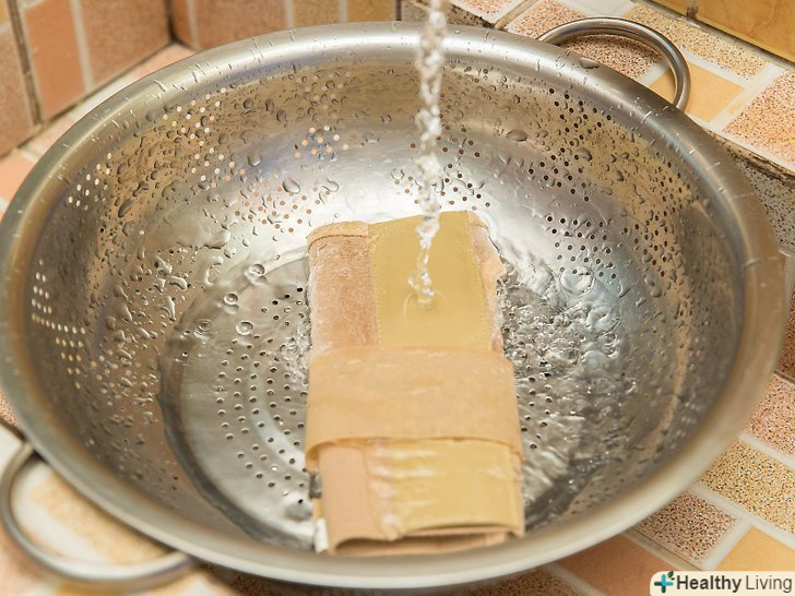 Це дозволить уникнути руйнування або корозії металевого шплінта.- Замочіть фіксатор зап'ястя в розчині. Використовуючи чисту тканину, потріть фіксатор миючим розчином.