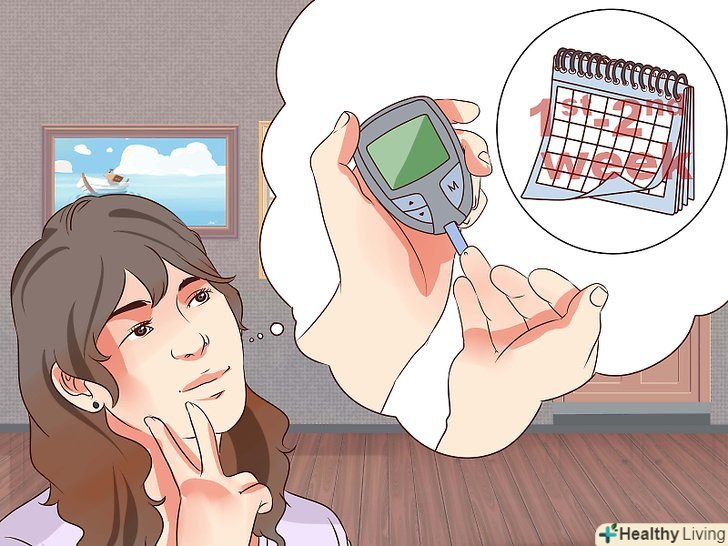 На перших порах частіше перевіряйте рівень глюкози в крові.протягом 1-2 перших тижнів слід дуже часто вимірювати рівень глюкози, для того щоб правильно налаштувати інсулінову помпу.[7]- Протягом одного-двох перших тижнів вимірюйте рівень глюкози в крові 8-10 разів на день.