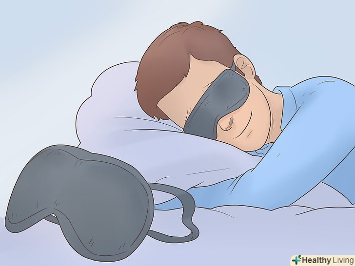Придбайте або зробіть самостійно маску для сну.якщо вам заважає навколишнє світло, зробіть простеньку маску для сну зі старого краватки, наволочки або пов'язки на голову. Можна також замовити маску для сну через Інтернет або придбати її в магазині.[17]- Повісьте в спальні щільні світлонепроникні фіранки.