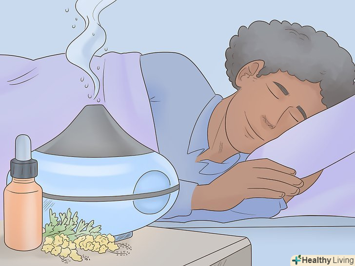 Розслабляйтеся і заспокойтеся за допомогою ароматерапії.спробуйте додавати в гарячу ванну масло меліси лікарської, ромашки, лаванди або материнки. Можна також придбати дифузор з ароматичними паличками, використовувати ароматичні свічки або спрей для постільної білизни.[20]- Спробуйте використовувати ароматерапію, коли готуєтеся до сну. Можна також поставити дифузор на нічний столик, щоб насолоджуватися заспокійливими ароматами прямо в ліжку.