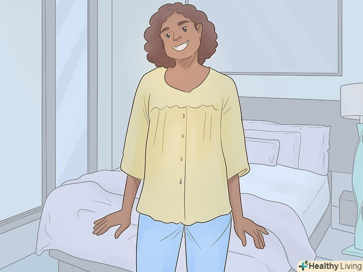 Одягайте вільне і зручне нижню білизну.віддавайте перевагу легким і вільно пропускає повітря тканинам, наприклад бавовні, і уникайте більш важких матеріалів, таких як фланель. Щільне і важке нижню білизну заважає організму злегка знизити температуру перед сном. Крім того, м'яке і зручне нижню білизну допоможе вам розслабитися.[21]- Сон голяка або в підходящому нижній білизні допомагає регулювати температуру тіла. Якщо вам жарко в ліжку, подумайте про те, щоб зняти зайву нижню білизну.