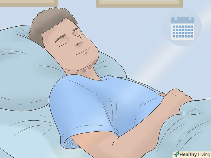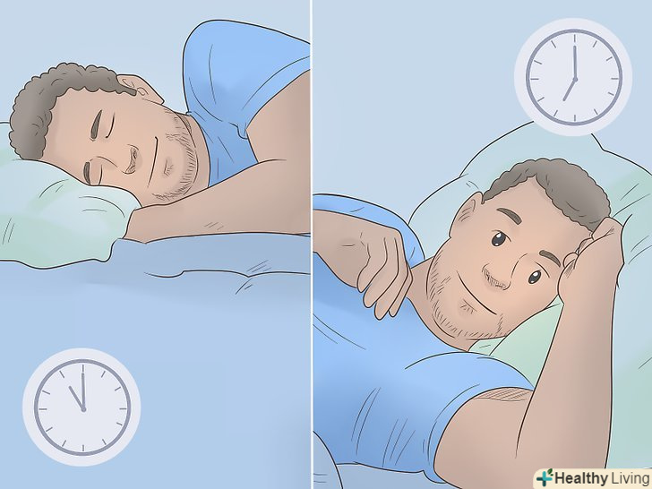Дотримуйтеся певного режиму, щоб ваш організм відчував, що наближається час сну.якщо ви День у день лягаєте спати в різний час, ваш організм не буде знати, коли слід готуватися до сну. Привчіть себе лягати спати в один і той же час і дотримуйтесь певний режим.[23]- До здорових звичок сну відносяться відмова від кофеїну і щільної їжі перед сном і вміння розслаблятися перед тим, як лягати спати.
