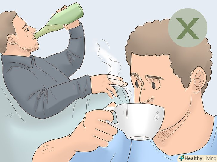 Не вживайте ввечері кофеїн і алкоголь.утримуйтеся від кофеїну за 6 годин до сну. Хоча у вас і може виникнути спокуса випити трохи спиртного перед сном, пам'ятайте про те, що алкоголь порушує цикл сну і погіршує його якість.[25]- Якщо ви часто відчуваєте проблеми із засинанням, не вживайте кофеїн хоча б за 8 годин до сну або відмовтеся від нього повністю. Пам'ятайте, що кофеїн міститься також в шоколаді і деяких знеболюючих препаратах.