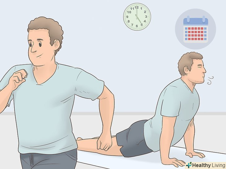 Займайтеся фізичними вправами 5 днів на тиждень, проте уникайте фізичних навантажень у вечірній час.регулярні заняття спортом допомагають заснути і покращують якість сну, якщо тільки вони не припадають на вечірній час. Не займайтеся спортом і уникайте інших інтенсивних фізичних навантажень хоча б за 3 години до сну.[27]- Фізична активність покращує кровообіг і сприяє виділенню гормонів, які допомагають залишатися в бадьорому стані.
