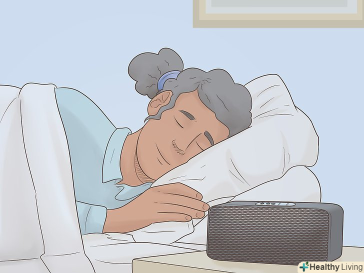 Позбудьтеся від небажаних звуків.шум може заважати вам заснути і погіршувати загальну якість сну. Спробуйте послухати спокійну радіопередачу, щоб відволіктися як від сторонніх шумів (наприклад, звуків вуличного руху), так і непотрібних думок.[4]- Спробуйте щовечора слухати одну і ту ж програму-це допоможе вам розслабитися і відволіктися. Пошукайте якусь спокійну і розслаблюючу передачу без гучних звуків, досить цікаву, але не дуже захоплюючу, щоб вона не розвіяла бажання спати.