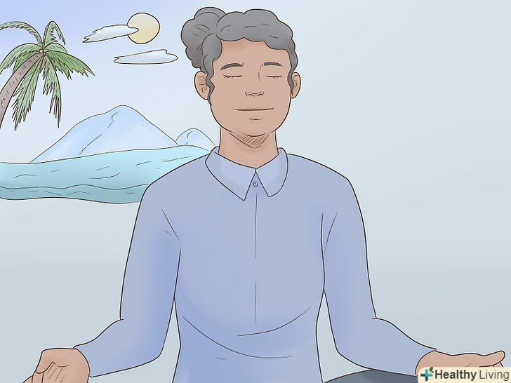 Спробуйте глибоко і повільно дихати животом.покладіть руку на живіт і повільно вдихніть на рахунок 4. Під час вдиху підніміть живіт і постарайтеся, щоб груди залишалася на місці. Затримайте дихання і порахуйте до 7, потім повільно видихніть і порахуйте при цьому до 8.[1]- Спробуйте глибоко дихати животом, коли ви вважаєте або уявляєте заспокійливі картини.