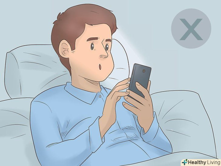 Не користуйтеся мобільним телефоном і комп'ютером і не дивіться телевізор перед сном.електронні екрани випромінюють синє світло, яке переконує мозок в тому, що вечір ще не настав. Намагайтеся не користуватися електронними пристроями хоча б за годину до сну.[13]- Крім іншого, електронна пошта, соціальні мережі і так далі стимулюють мозок і заважають розслабитися перед сном.