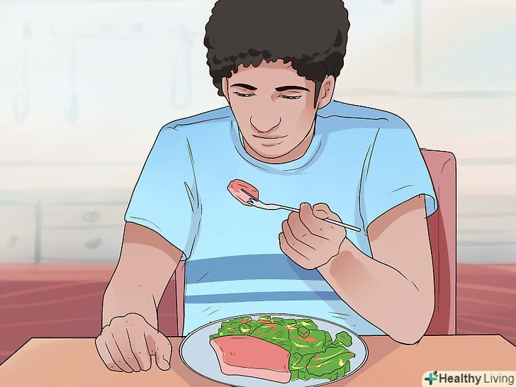 Подбайте про правильний режим харчування.якщо ви голодні або, навпаки, тільки що наїлися досхочу, це не дасть вам заснути. Намагайтеся, щоб останній прийом їжі закінчувався за 2-3 години до сну. Особливо це стосується тих, хто страждає кислотним рефлюксом. Якщо з моменту останнього прийому їжі пройшло 4-5 годин, перед сном ви можете злегка перекусити.[18]- Можете з'їсти тост з білого хліба з арахісовим або горіховим маслом. Ви не будете більше відчувати голоду і, можливо, навіть відчуєте себе більш сонним.