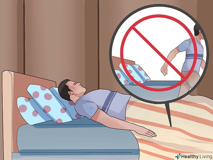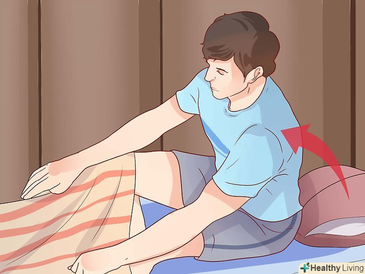 Зробіть спальне місце зручним.якість матраца і подушки впливає на сон. Якщо ваш матрац підібраний правильно, ви будете спати міцно. Матрац слід міняти кожні сім років або частіше, якщо він просів або став незручним.[13] якщо ви відчуваєте дискомфорт, можна зробити це раніше зазначеного часу.[14] якщо ви прокидаєтеся з болем в шиї або спині або краще спите в гостях або в готелі, а не вдома, то, швидше за все, прийшов час поміняти матрац.- Подбайте про те, щоб Ваше ліжко було необхідної довжини і ширини. Якщо ви спите разом зі своїм партнером, вам обом повинно вистачати місця перевертатися уві сні.