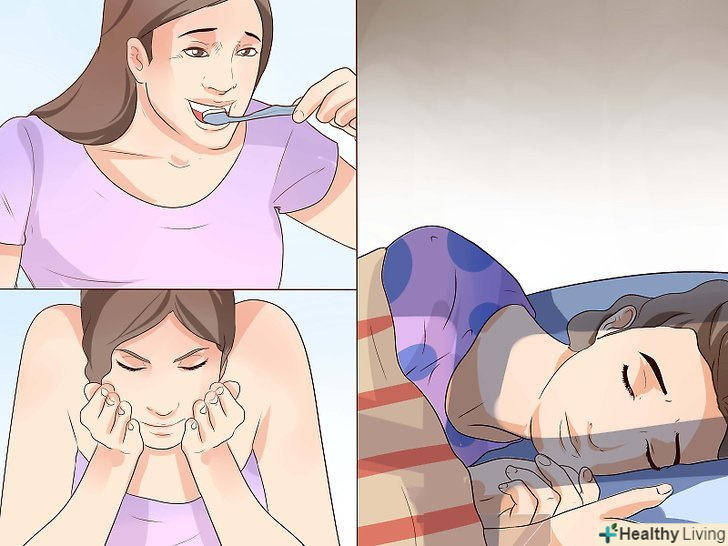 Дотримуйтеся регулярного розпорядку щовечора перед сном.найголовніше те, що ваші дії повинні бути послідовними. Почистіть зуби, вмийтеся і виконуйте інші дії в одному і тому ж порядку щоночі. Включіть в свій графік підготовки до сну заспокійливі процедури. Завдяки цьому ваш організм отримає сигнал, що прийшов час розслабитися.[5]- Наприклад, перед сном ви можете приймати теплу ванну або душ.