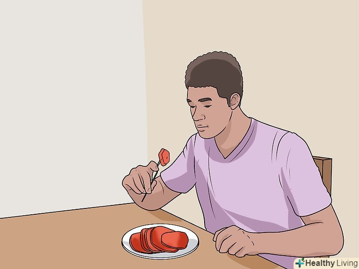 Харчуйтеся продуктами, які дадуть вам максимум енергії. Тримайтеся подалі від важких вуглеводів (таких як хліб або макаронні вироби), тому що вони довго перетравлюються, через що можуть викликати сонливість. Крім того, варто уникати продуктів з високим вмістом цукрозамінників, наприклад, цукерок, тістечок і солодких газованих напоїв, тому що вони призводять до стрибка рівня цукру в вашому організмі і втрати енергії. Замість цього краще віддати перевагу їжі, яка сприяє підвищенню рівня цукру в крові, забезпечуючи вас енергією на весь день. [4]- Жменя мигдалю — відмінний варіант для перекусу, крім того, в ньому міститься багато вітаміну Е і магнію. А ще мигдаль багатий білками, які забезпечать вас енергією на весь день.