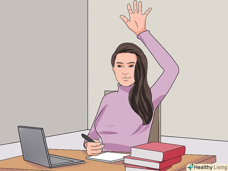 Проводьте час серед колег або однолітків на різних зустрічах або на заняттях. якщо ви відчуваєте, що ось-ось заснете прямо під час важливої зустрічі або заняття, змусьте себе поспілкуватися з кимось. Почніть задавати питання колегам або клієнтам, піднімайте руку і намагайтеся активно брати участь в розмові. Участь в обговоренні допоможе вам відчувати себе бадьоро і зосереджено. [15]- Крім того, якщо ви плануєте представити колегам презентацію в Powerpoint на 50 слайдів, постарайтеся залучити колег і слухачів в обговорення по ходу презентації. Інакше ви ризикуєте приспати і себе, і слухачів, і ваша зустріч вийде дуже сухою і нудною.