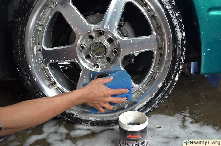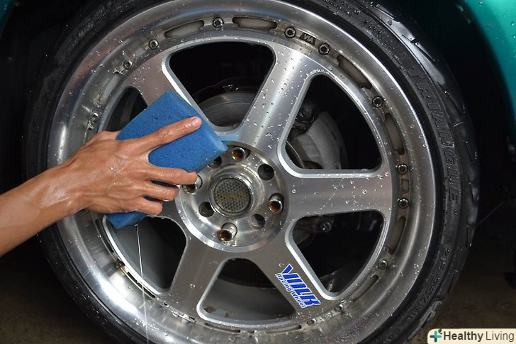 Протріть колеса вологою губкою.так, ви видалите більшу частину залишилася гальмівної пилу і бруду, запобігаючи появі подряпин під час подальшого очищення.