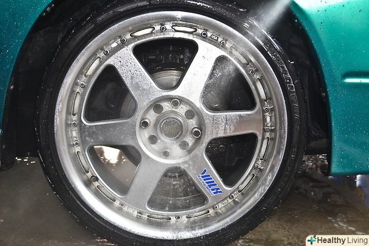 Змийте розчин.полийте колеса водою зі шланга, щоб змити засіб для чищення.