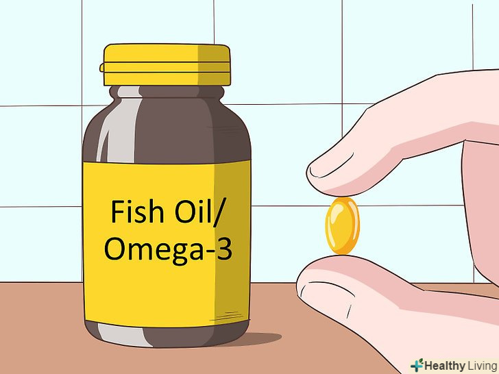 Приймайте риб'ячий жир або харчові добавки з омега-3 кислотами.жирні кислоти омега - 3 можуть допомогти вашому тілу у виробництві елементів, необхідних для здорових хрящів і суглобової рідини. Ви можете щодня приймати харчові добавки або отримувати омега-3 жирні кислоти, вживаючи в їжу більше жирної риби, волоських горіхів або лляного насіння.[20]- Звичайна добова доза жирних кислот становить від 500 до 1000 мг. Не приймайте більше 2000 мг на добу.[21]