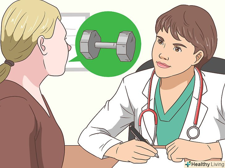 Перш ніж починати новий комплекс фізичних вправ, порадьтеся з лікарем.для здоров'я суглобів важлива регулярна фізичне навантаження, яка може поліпшити в'язкість і амортизуючі властивості суглобової рідини.[23] якщо у вас багато проблем зі здоров'ям або до теперішнього часу ви не займалися тренуваннями, запитайте у лікаря, з яких вправ вам почати.[24]