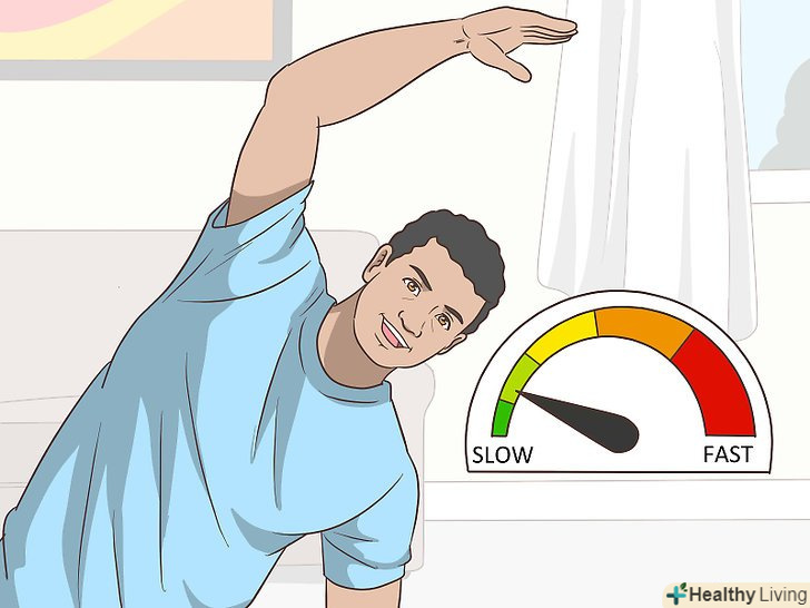 Почніть з малого і адаптуйте вправи, якщо вони викликають біль.почніть з коротких тренувань, наприклад, займайтеся по 5 хвилин кілька разів на день. Якщо у вас проблеми з суглобами, велика ймовірність, що протягом перших декількох тижнів ви будете відчувати дискомфорт або скутість. Намагайтеся активно займатися в хороші дні або коли біль менше виражена, а в погані дні не навантажуйте себе.[25]- Припиніть тренування і проконсультуйтеся з лікарем, якщо ви відчуваєте гостру, різко посилюється біль під час вправ або після них.