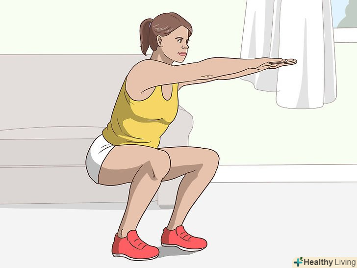 По можливості займіться силовими вправами. вправи на зміцнення ніг, наприклад, присідання і випади, корисні для колін, таза і попереку. Якщо ви страждаєте від болю в плечах або ліктьових суглобах, спробуйте вправи з гантелями, такі як згинання рук на біцепс і жим від плечей.[28]- Спочатку обов'язково обговоріть можливість силових вправ з лікарем. Якщо ви тільки починаєте займатися тренуваннями, вам найкраще записатися на групові заняття або в спортзал. Присутність тренера або інструктора допоможе знизити ризик травми.[29]