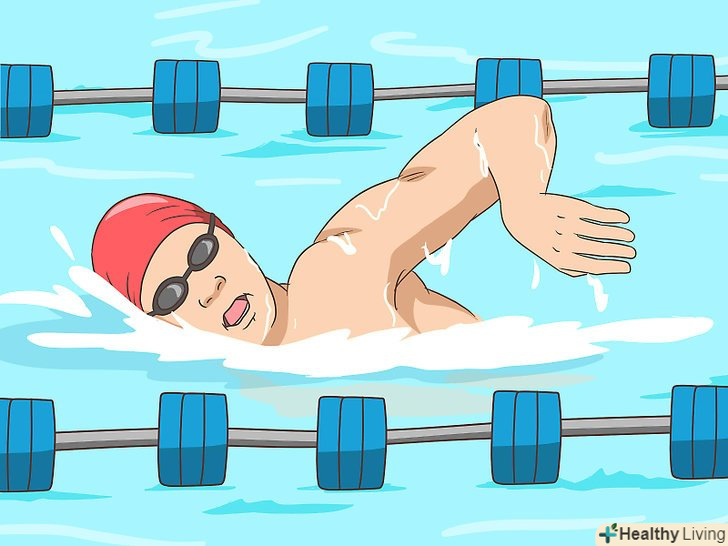 Займіться плаванням, особливо якщо під час інших вправ ви відчуваєте біль.якщо під час вправ з вертикальним навантаженням, таких як ходьба або біг, ви відчуваєте біль, плавання може виявитися хорошим рішенням. Під час плавання навантаження на суглоби знижується, так як у воді ваша вага тисне на суглоби в набагато меншій мірі. Спробуйте плавати по доріжках, ходити у воді або зайнятися аквааеробікою.[30]