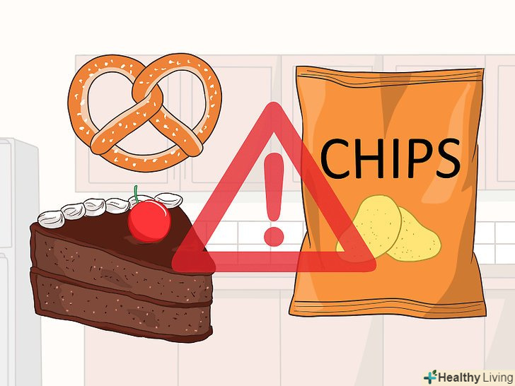 Обмежте продукти з високим вмістом цукру або солі.продукти з високим вмістом цукру і солі посилюють біль в суглобах. Сіль потрібна нашому організму для утримання рідини, але надмірне її споживання шкідливо для здоров'я. Обмеження споживання солі і цукру також допоможе вам скинути зайву вагу, що корисно для суглобів.[8]- Постарайтеся обмежити вживання солі до 1000-1500 мг на добу. Не соліть їжу і не їжте солоні снеки, в тому числі чіпси і сухарики. Під час приготування їжі замінюйте сіль спеціями, соком лимона та іншими приправами.