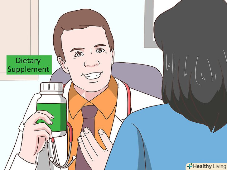 Перш ніж почати приймати харчові добавки, обговоріть це з лікарем.хоча ефективність харчових добавок досі є предметом суперечок, багато людей з хворими суглобами стверджують, що біологічно активні добавки зменшують вираженість суглобового болю. Спочатку поговоріть з лікарем, попросіть дати вам рекомендації і не забудьте згадати про ліки, які ви приймаєте в даний момент, щоб не допустити можливість шкідливого поєднання медикаментів.[12]- Якщо добавка допомогла вам, продовжуйте її приймати. Якщо ви п'єте харчову добавку від 4 до 6 тижнів і не помітили поліпшення, можливо, вона не коштує витрачених на неї грошей.