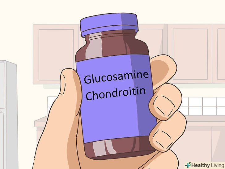 Почніть прийом Глюкозамін - хондроїтинового комплексу.є підстави вважати, що глюкозамін і хондроїтин можуть зменшити суглобовий біль, запобігти руйнуванню хряща, поліпшити якість суглобової рідини і викликати регенерацію тканин суглоба.[15]- Звичайна доза становить від 300 до 500 мг кожної речовини 3 рази на день, але ви повинні уточнити у лікаря або фармацевта дозування, рекомендовану особисто вам.