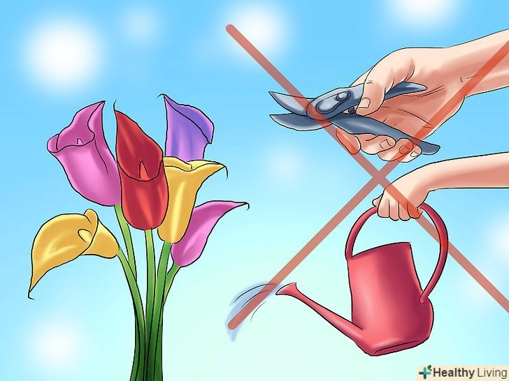 Вода для вашої кали. Кали потребують води протягом усього літа. Якщо викопати їх для перезимівлі в приміщенні, вони потребуватимуть додаткової води. Пам'ятайте, їх потрібно підгодовувати два тижні протягом вегетаційного періоду водорозчинним добривом, доданим в лійку, але припиніть підгодівлю, як тільки кали почнуть цвісти.- Продовжуйте підгодівлю виросли Каллів протягом усього періоду цвітіння.