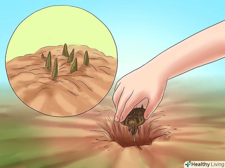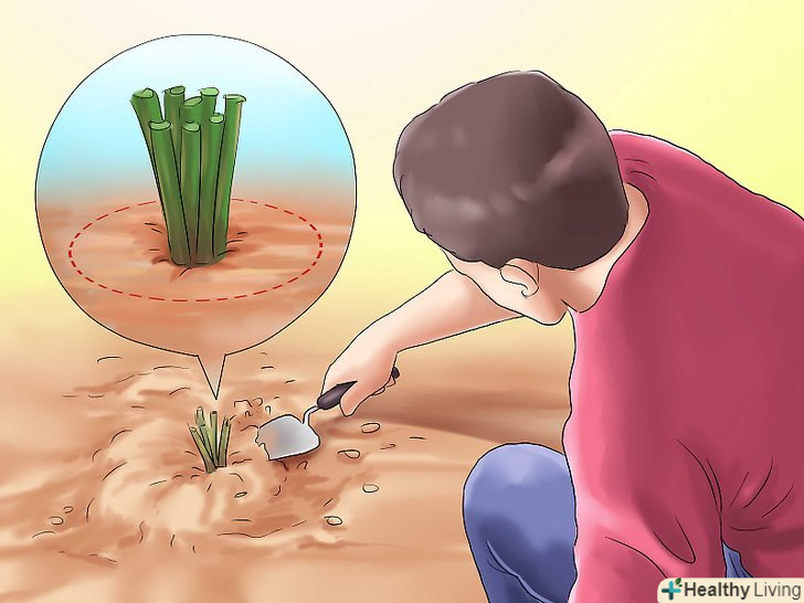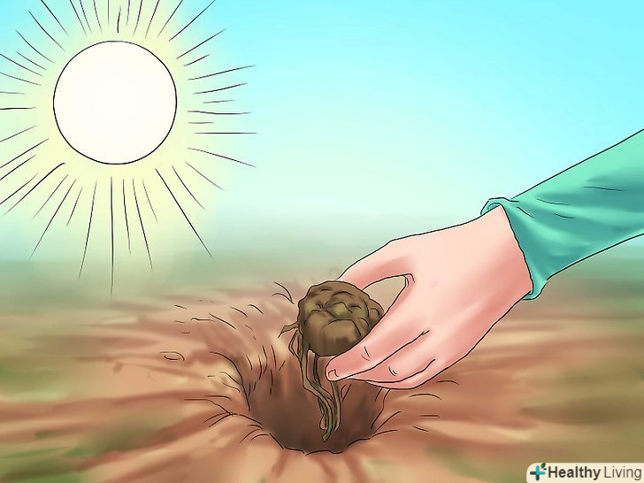Викопайте свою цибулину. ретельно відкопайте кореневище кали. Обов'язково викопуйте набагато ширший отвір, ніж ви думаєте, що потрібно. Це допоможе вам уникнути пошкодження цибулини лопатою. [1]