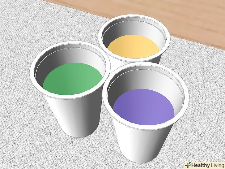 Додайте ваші харчові барвники в кожну чашку. Вам потрібно використовувати кілька основних кольорів для змішування вторинних кольорів, якщо ви використовуєте традиційний червоний, зелений, синій і жовтий харчовий барвник. Для створення більш динамічного і витонченого кольору, перейдіть на сайт The Food Network за посиланням http://www.foodnetwork.com/recipes/articles/Frost-by-Numbers-How-to-Make-Frosting-Colors.html.