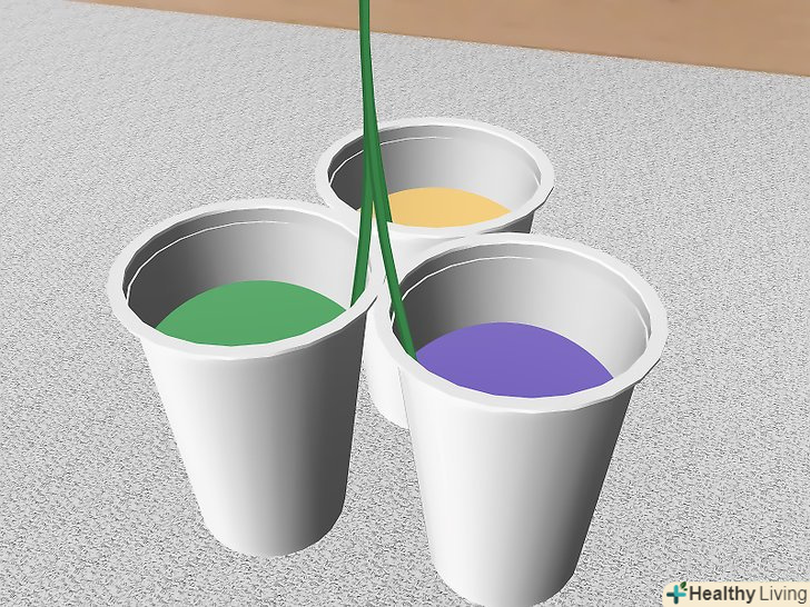- Використовуйте ніжні рухи, щоб уникнути пошкодження стебла. Якщо ви пошкодили стебло, то його можна врятувати. Зрізати стебло під кутом 45 градусів і пофарбувати його в один колір замість декількох. [2]