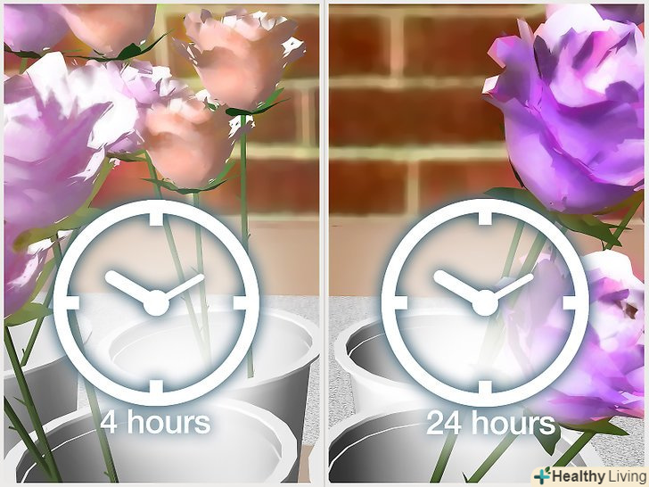 Спостерігайте за трояндами 2-24 години. троянди будуть пити харчові барвники і вбирати колір в свої пелюстки. Дістаньте троянди, коли пелюстки знайдуть потрібний колір.- Ніжні кольори можуть зайняти від двох до чотирьох годин.