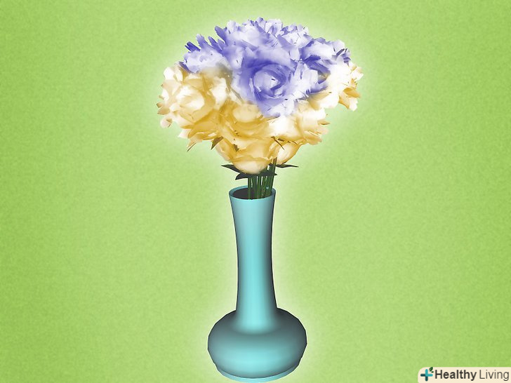 Заповніть вазу чистою водою з підгодівлею для зрізаних квітів. пакети з підгодівлею для зрізаних квітів доступні в квіткових магазинах, магазинах садівництва і в Інтернеті. Поставте ваші кольорові троянди у вазу і насолоджуйтеся.- Міняйте воду з підгодівлею для зрізаних квітів кожен день, щоб тримати ваші пофарбовані троянди свіжими. [3]