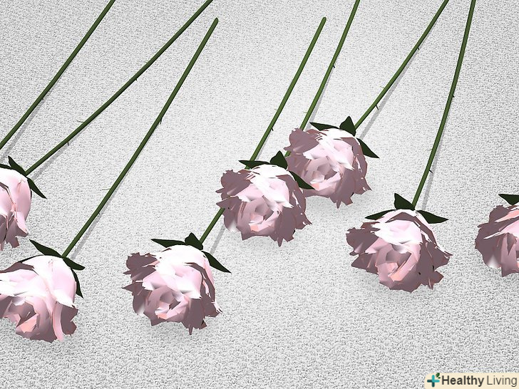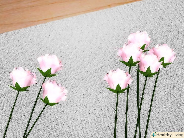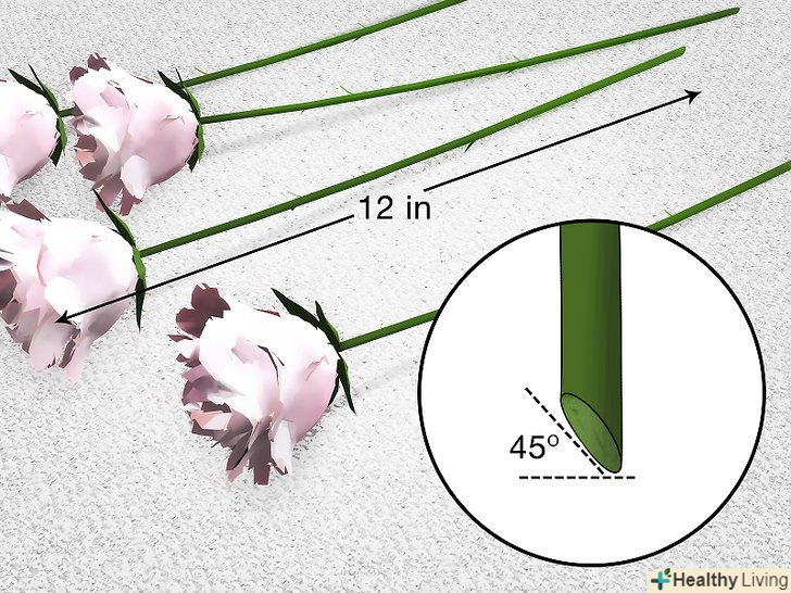 Встановіть ваші білі троянди на робочому столі. відріжте кожне стебло до 10-12 дюймів (25,4 до 30,5 см) завдовжки. Зрізайте гострими ножицями під кутом 45 градусів для збільшення площі поглинання стебел.- Стебла будуть "пити" барвник через стебло.