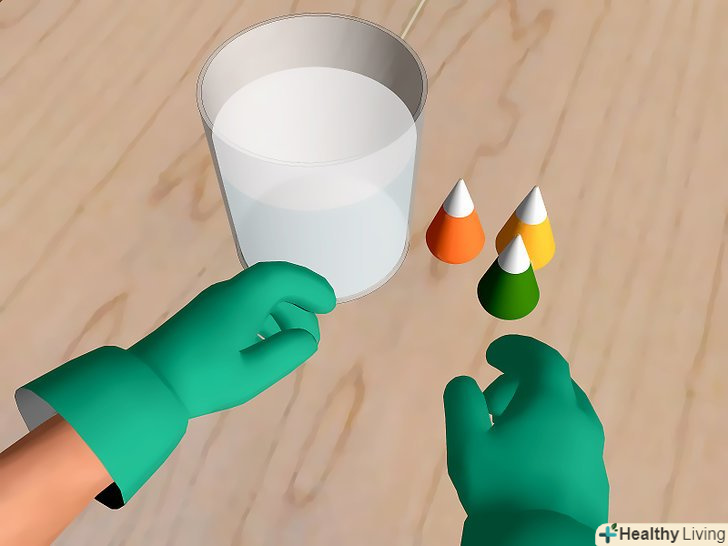 Принести глечик з водою і харчовий барвник на ваш робочий стіл. одягніть гумові рукавички, щоб не забруднити руки.